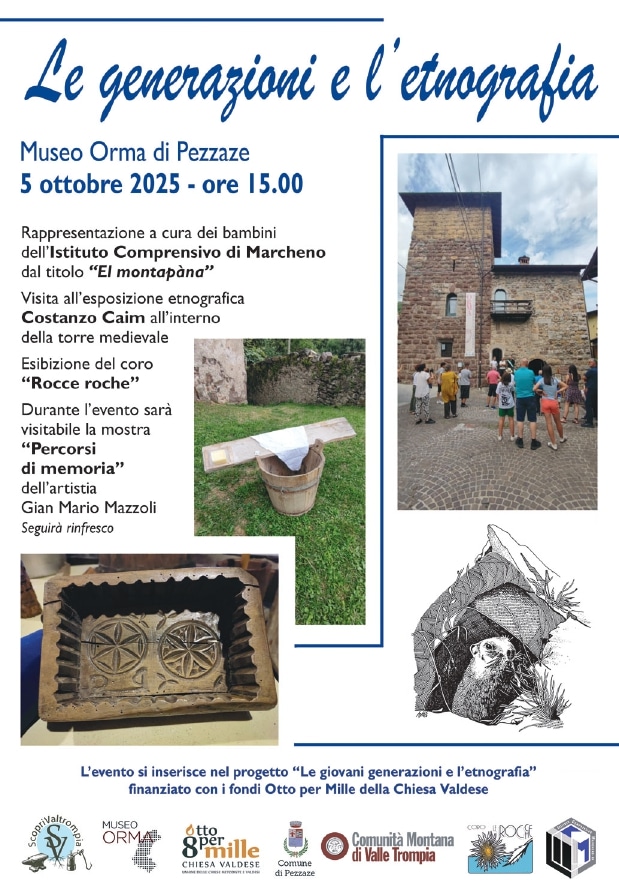 Il pomeriggio avrà inizio con una rappresentazione teatrale a cura dei bambini dell’Istituto Comprensivo di Marcheno, che porteranno in scena lo spettacolo “El montapàna”. Sarà un’occasione per vedere come i più giovani si approcciano alle tradizioni e alla storia locale, dando vita a un passato che merita di essere ricordato e valorizzato.