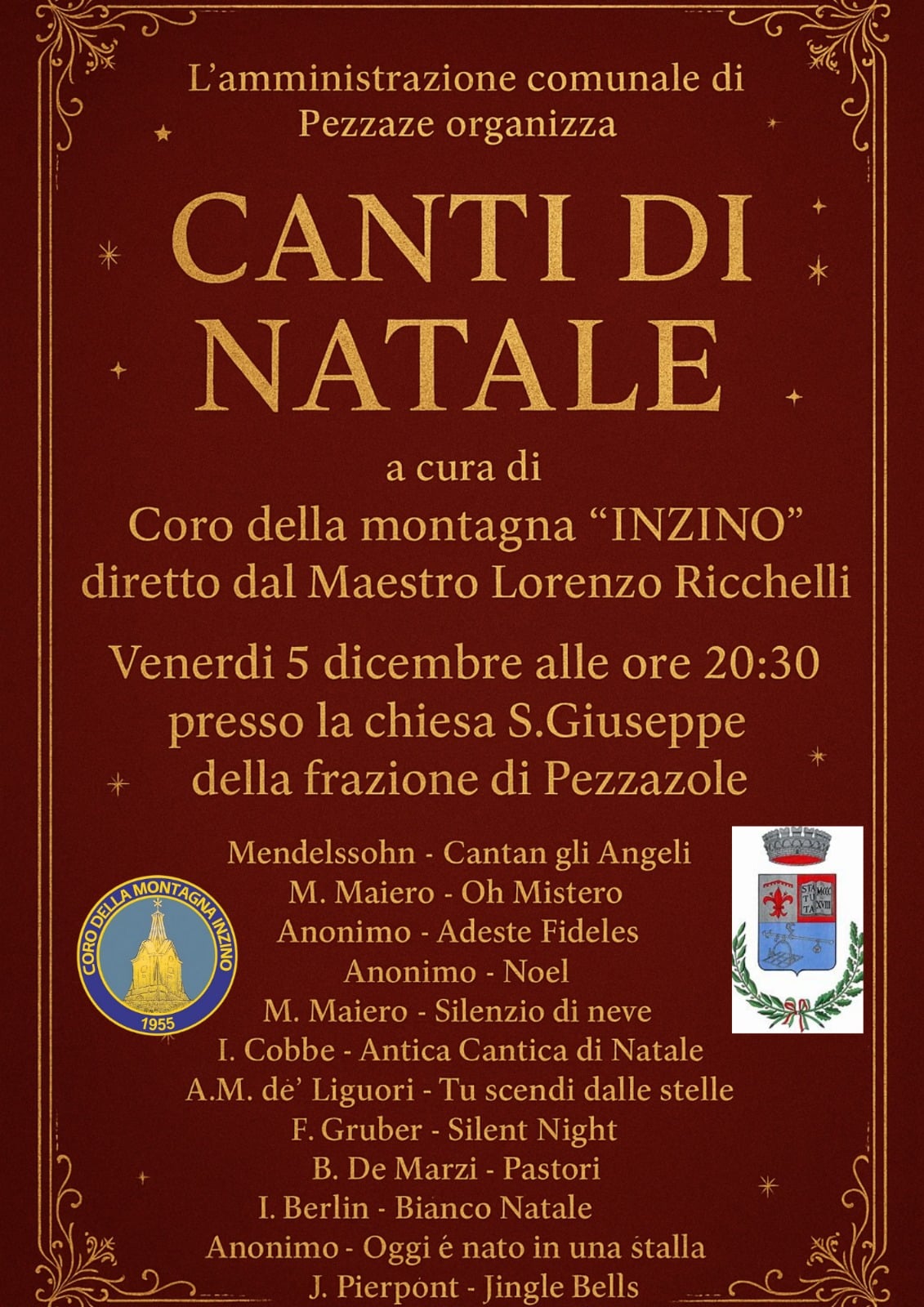 Protagonista della serata sarà il Coro della Montagna “Inzino”, diretto dal Maestro Lorenzo Ricchelli, che accompagnerà il pubblico in un viaggio musicale attraverso alcuni dei brani più amati del repertorio natalizio, tra melodie tradizionali e celebri composizioni internazionali.