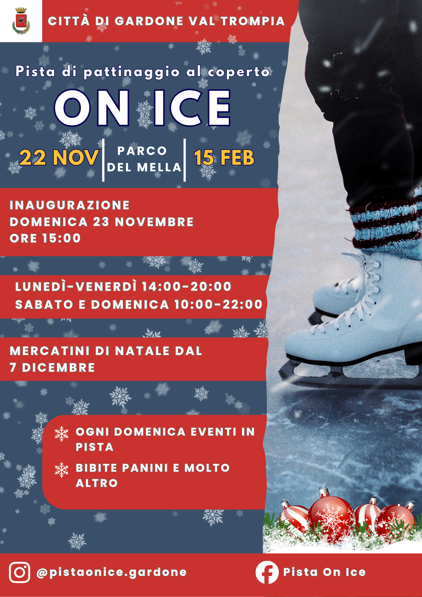 La pista ON ICE sarà aperta dal 22 Novembre al 15 Febbraio presso il Parco del Mella.